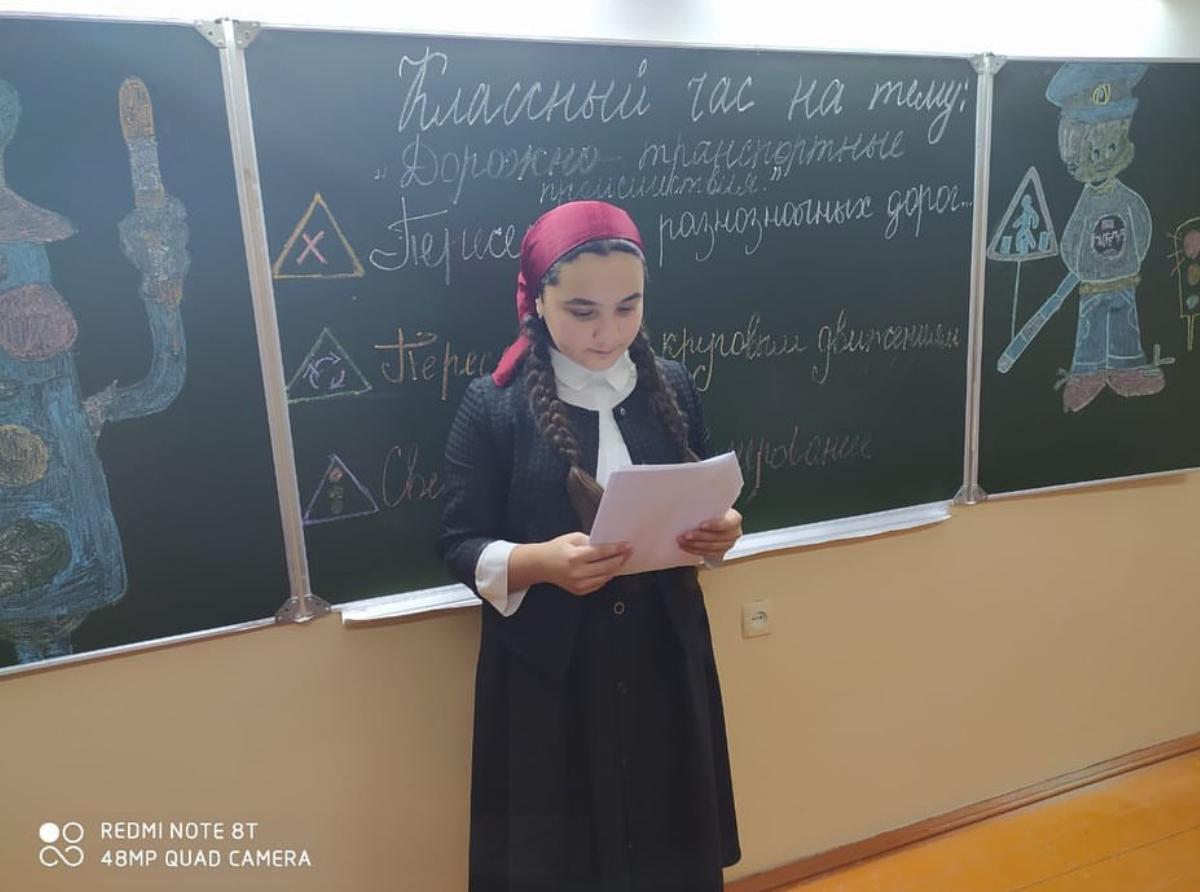 В 6"б" классе проведен классный час на тему "Дорожно - транспортные происшествия" Классный руководитель Эскиева Л.В.