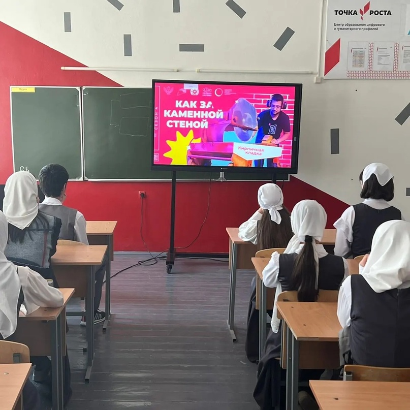 В рамках федерального проекта «Успех каждого ребенка»,с целью популяризации профессий через проект «Шоу профессий» 6 октября 2023 г. учащиеся МБОУ «СОШ с.Шатой»просмотрели трансляцию демонстративного ролика по тематике «Строительная сфера », посвященного компетенции «Кирпичная кладка».