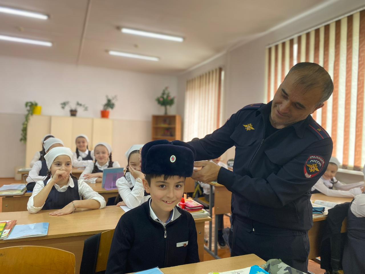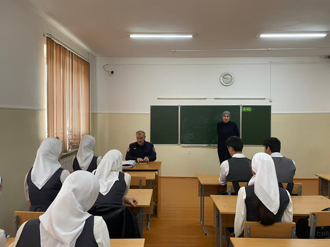 Для учащихся 4, 9 и 11 классов МБОУ « СОШ с.Шатой» была организована встреча со старшим участковым Тахаевым Х.А., который рассказал о героических поступках своих коллег, в том числе опасных для их жизни и здоровья, а также героях, погибших при исполнении служебных обязанностей.